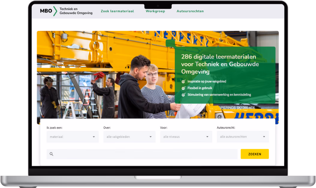 The Technology and Built Environment BTG is the first BTG to participate in a pilot project organised by the MBO Council and Npuls to develop a portal with high-quality digital learning materials. Teachers, instructors and developers from MBO institutions and (training) companies within the technical sectors can easily search for, find and reuse learning materials in one central location.