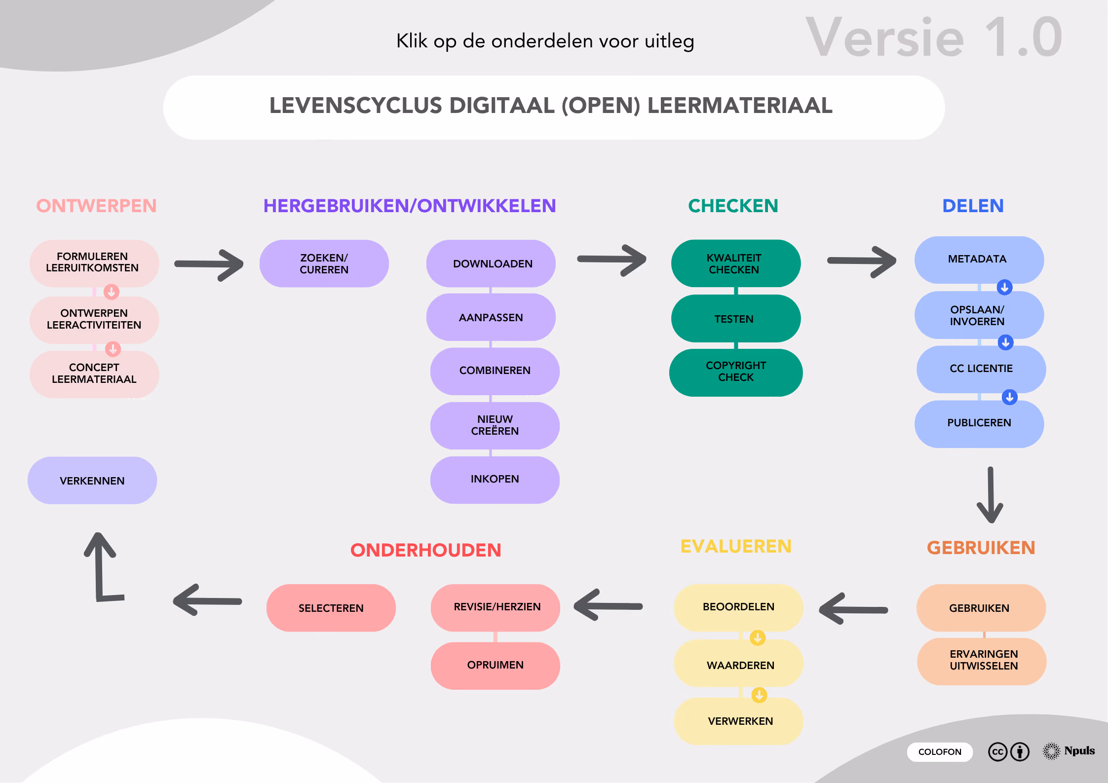 Werk jij met (open) digitaal leermaterialen? Dan is er goed nieuws! De experts van de Npuls-themalijn Natuurlijk Open en de community edusources hebben een interactieve tool ontwikkeld die je helpt bij het toepassen van de levenscyclus van open leermateriaal in de praktijk.